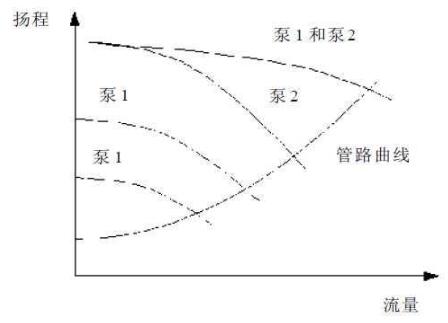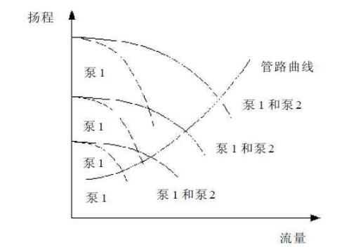 (2)應(yīng)使單臺水泵的性能曲線與管路性能曲線有交點,而且交點不要離水泵性能曲線末端太近,這樣就不會發(fā)生氣蝕現(xiàn)象。